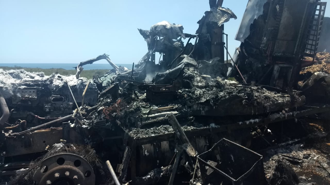 Pérdida total fue declarado un tráiler cargado con maiz que se incendió cuando se desplazaba de norte a sur por la carretera Mazatlan-Culiacán.