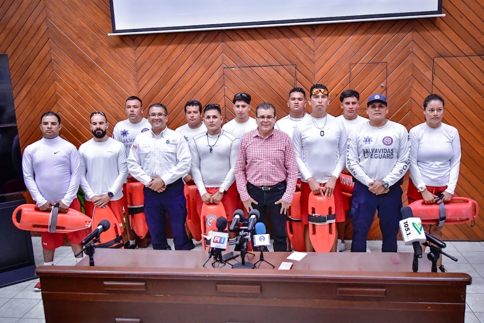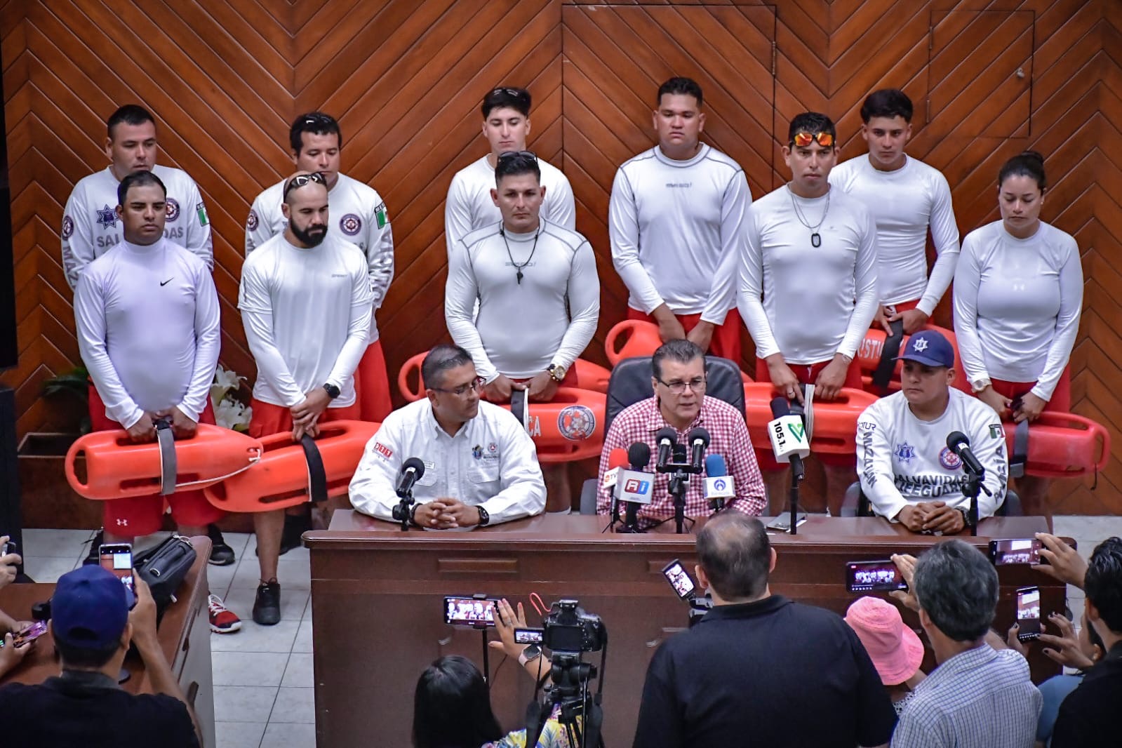 En rueda de prensa, el Alcalde destacó que estas acciones forman parte de la primera etapa de reforzamiento que se tiene contemplado para el área de playas, primeramente es el incremento del personal para después dar pie a la entrega de equipo y unidades con los cuales el personal en general brindará prevención y auxilio en caso de emergencia.
