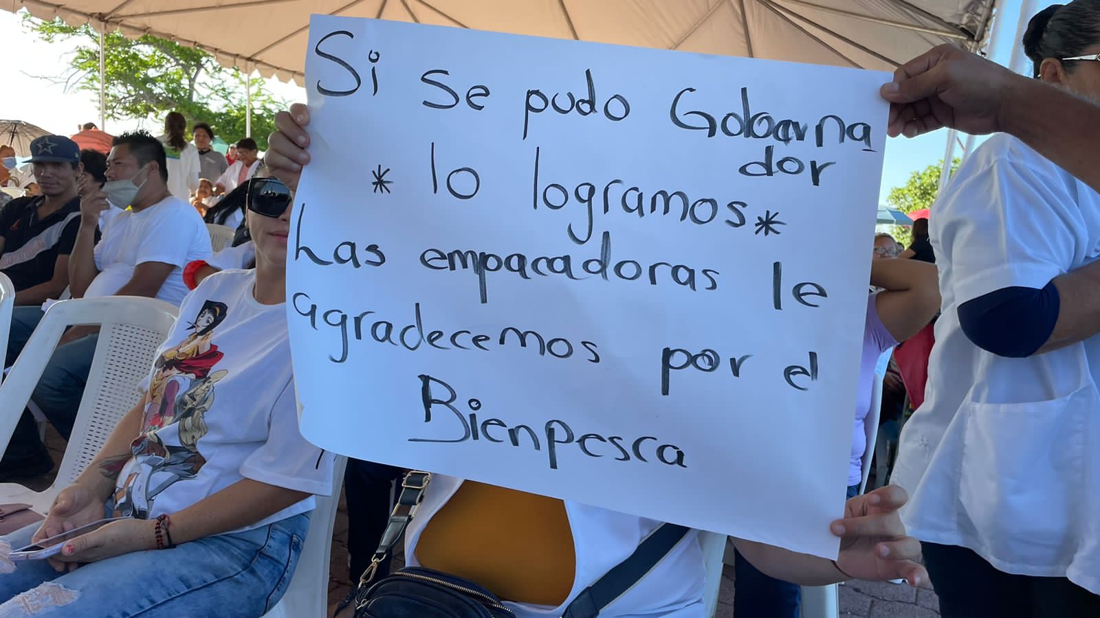 En su discurso el gobernador Rubén Rocha Moya resalto que el apoyo de 3 mil 600 pesos viene a complementar el que ya se les entrega por parte de la federación, que es de 7 mil 200 pesos anualmente, para dar un total de 10 mil 800 pesos para cada pescador; pero el que se incluya a las trabajadoras de la maquila, es un gran paso para el sector, ya que por años se había pugnado por que fueran tomadas en cuenta.