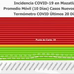 Agregó que el puerto continúa en color verde del Semáforo Estatal y del Termómetro del Ayuntamiento, que se ubicó en 4.1 grados Covid, mientras que en el estado, Mazatlán está en el sexto sitio, después de Culiacán con 77 casos activos, Ahome con 32, Guasave con 28, Salvador Alvarado con 16 y El Fuerte con 15.