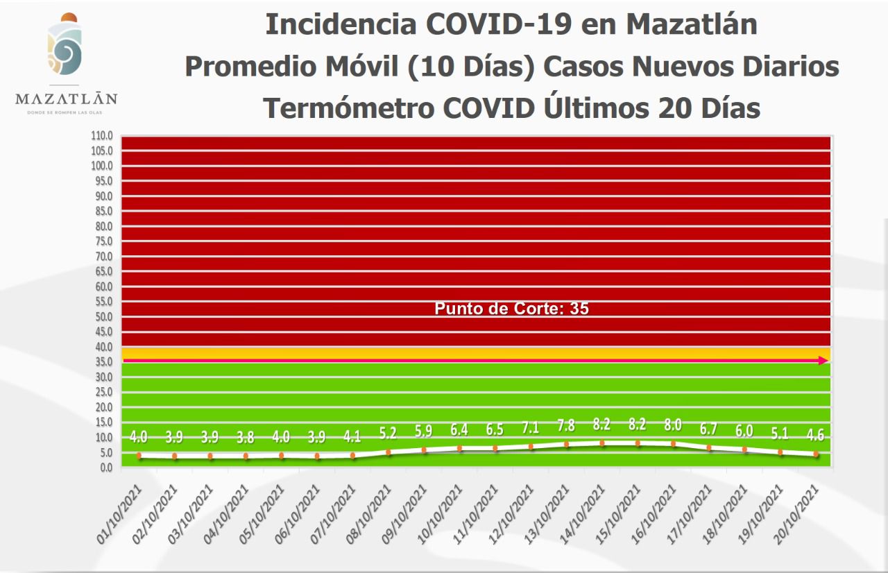 Agregó que el puerto sigue en color verde del Semáforo Estatal y del Termómetro del Ayuntamiento, que hoy se ubica en los 4.6 grados.