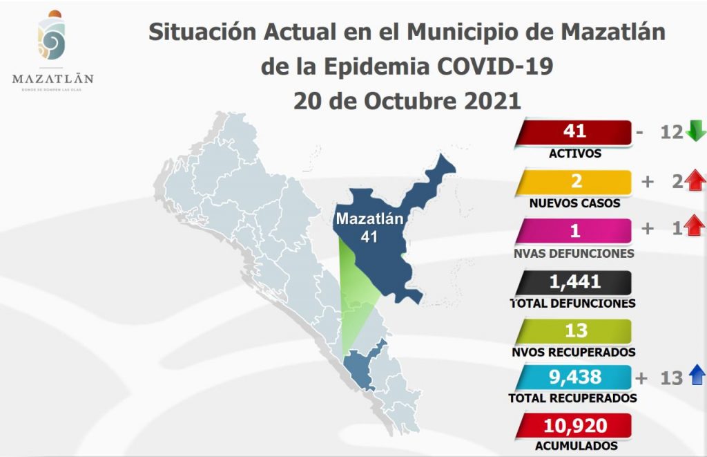 Mazatlán.- La tendencia favorable a la baja en los casos activos de Covid-19 en Mazatlán se mantiene desde hace seis días, y este jueves el puerto amaneció con 41 pacientes del virus Sars-Cov-2, informó Cristian Castillo López, encargado de Protocolos y Sanidad del Ayuntamiento.
