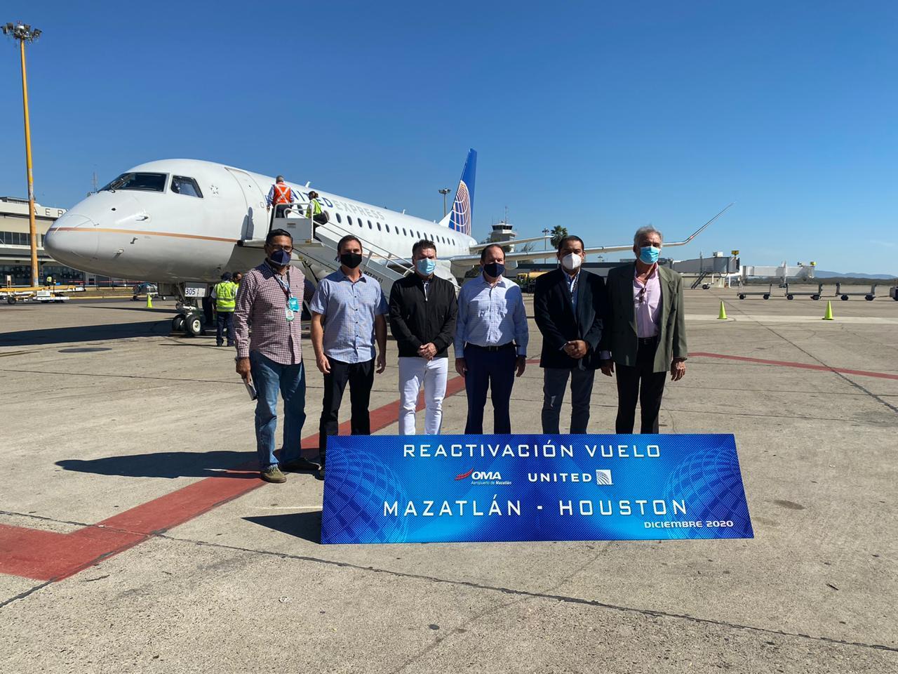 Acompañado del Director General en México de United Airlines, Andrés Brothers; del secretario de Desarrollo Económico y Turismo del municipio, José Luis Terán, el Subsecretario Juan José Ruiz y el Director del aeropuerto de Mazatlán, Víctor Vladimir Ramírez, Pérez Barros destacó que este vuelo directo de Houston confirma la confianza que le tienen a Sinaloa y Mazatlán y este es el ejemplo de que estamos reactivando la conectividad aérea internacional.