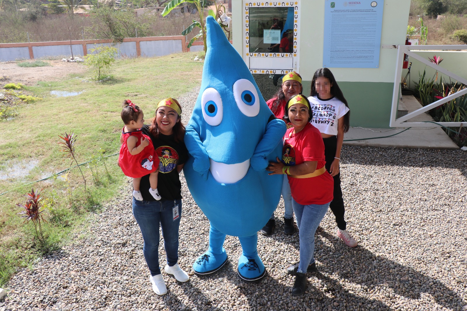 Mazatlán, Sinaloa, a 28 de abril de 2023._ “¡Ya llegó la gotita que cuida el agua!” fue la expresión de un pequeño paciente del Centro de Rehabilitación Infantil y Equinoterapia, al ver que Tago llegaba a estas instalaciones que forman parte del Hospital Militar Regional, donde este viernes celebraron el Día del Niño.