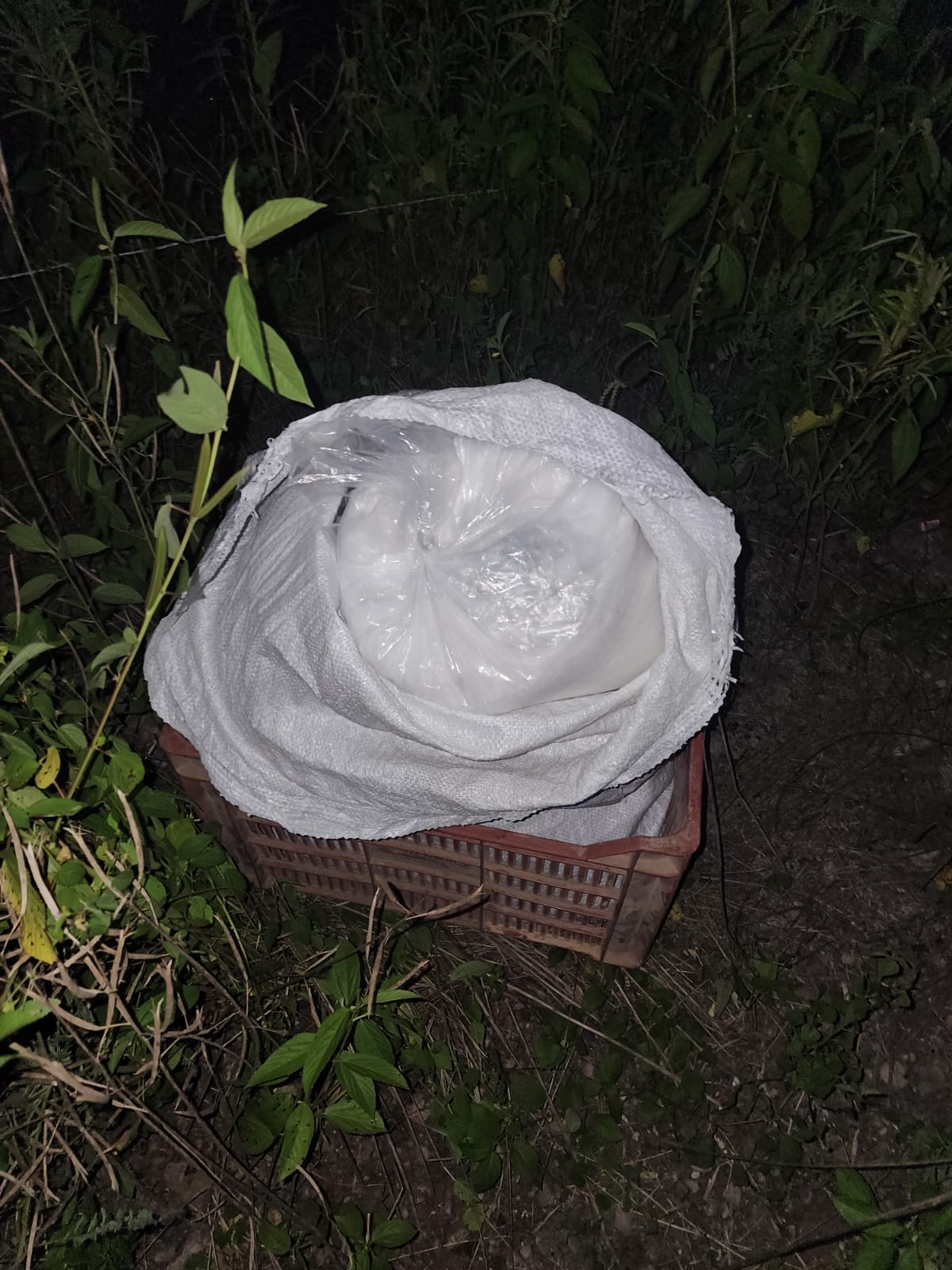 Al aproximarse notaron que el costal contenía varias bolsas de plástico con una sustancia de color blanco, con las características similares a la droga conocida como cristal, de las cuales dieron un peso aproximado de 30 kilos.