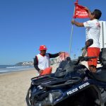 MAZATLÁN.- Con el fin de tener bien señalizadas las zonas de playa y que los bañistas puedan conocer las condiciones que prevalecen en el mar, el Escuadrón de Salvamento Acuático de la Secretaría de Seguridad Pública de Mazatlán se dio a la tarea de colocar banderines nuevos.