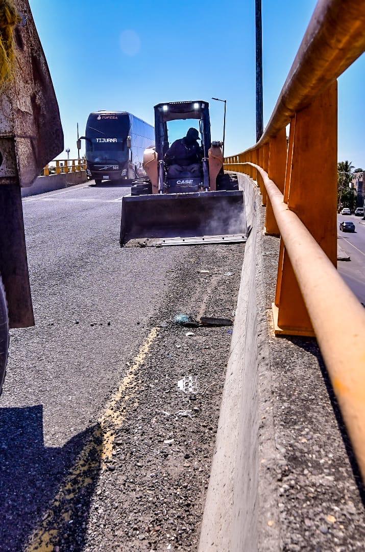 Este martes, personal del departamento está llevando a cabo estas intensas labores en el puente de la Corona, ubicado en Carretera Internacional, debido a que constantemente registra una gran cantidad de material, plástico y basura.