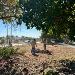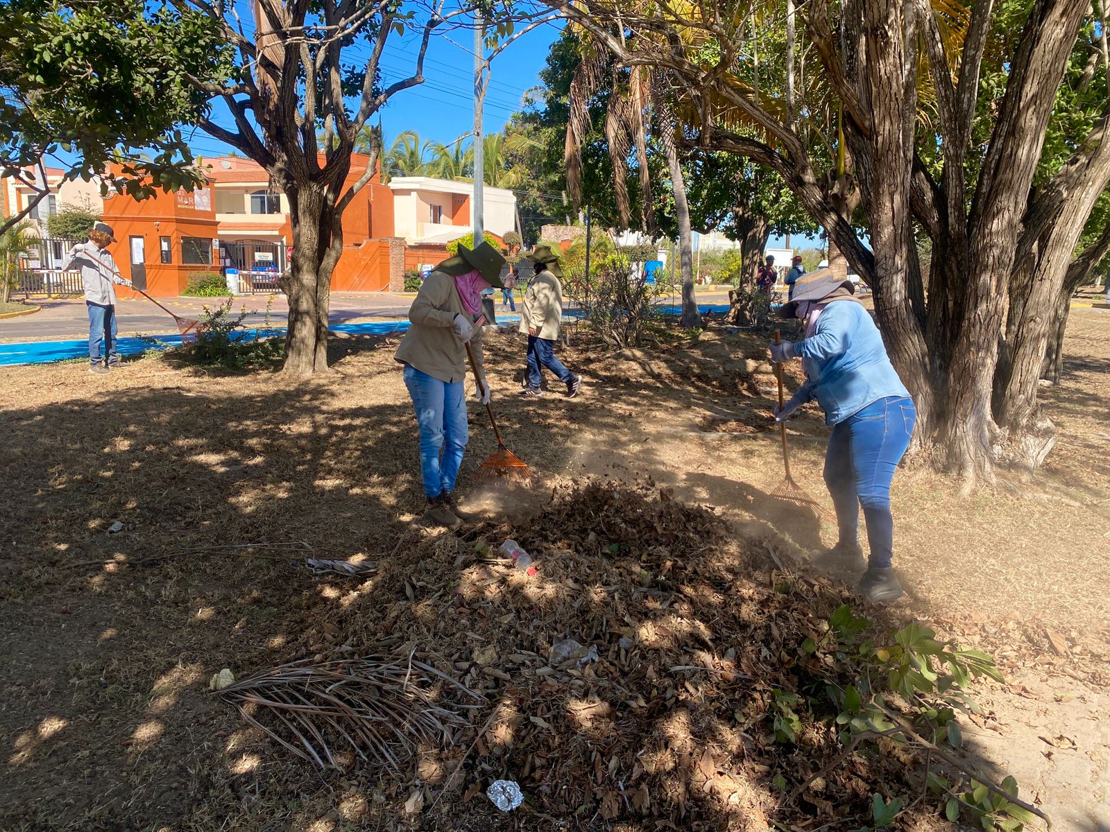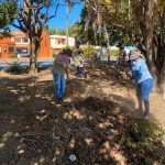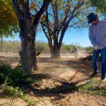 El equipo de parques y jardines trabaja en el podado de árboles, cortando maleza y realizando cajetes a los elementos vegetativos que se encuentran, para posteriormente, pueda pasar el departamento de aseo urbano con labores de barrido de el arroyo de calle.