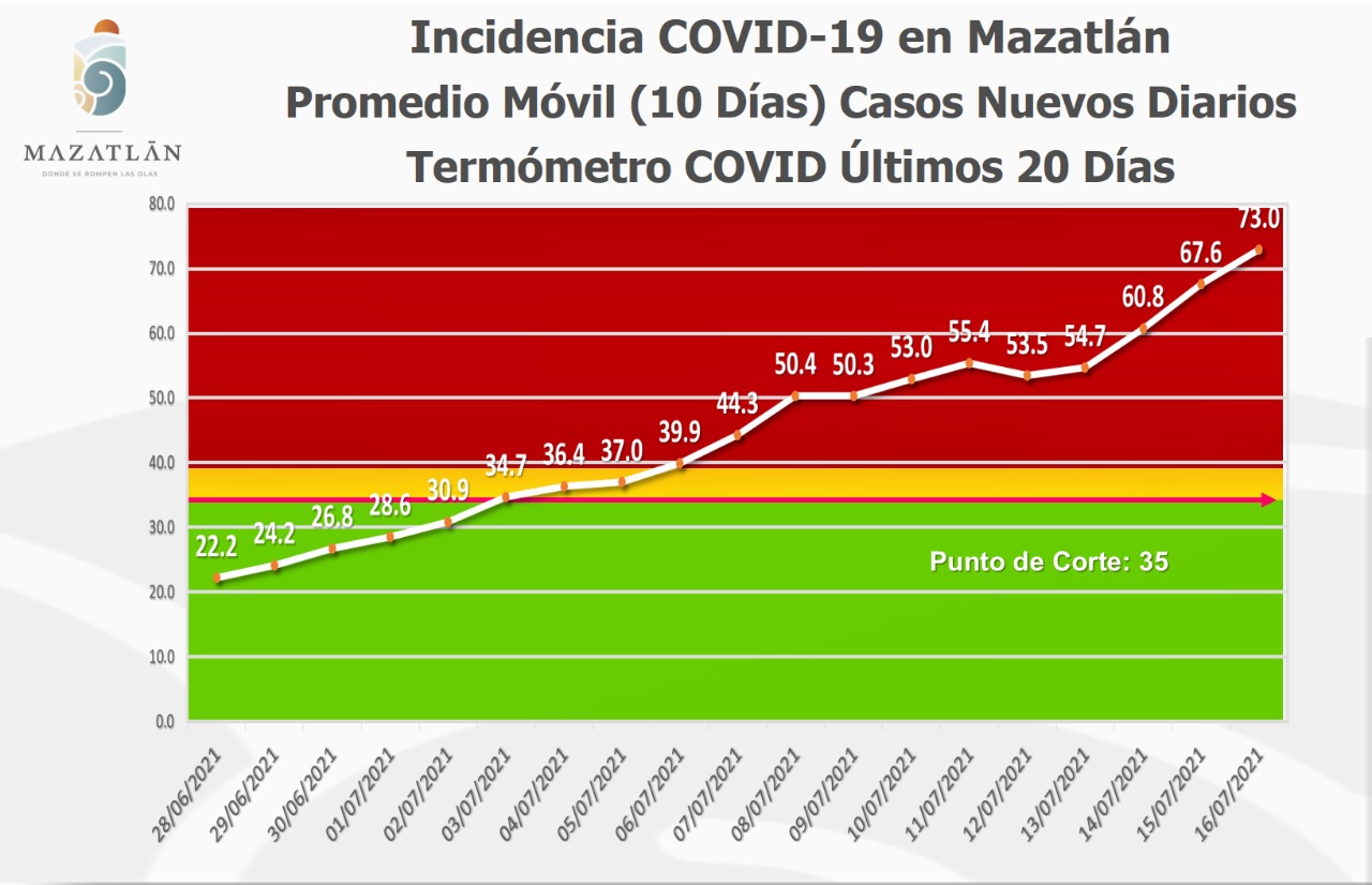 El Termómetro Covid del Municipio se ubicó en los 73.0 grados, por lo que se reitera el llamado a cumplir con el uso correcto del cubrebocas, gel antibacterial, la sana distancia y evitar aglomeraciones.