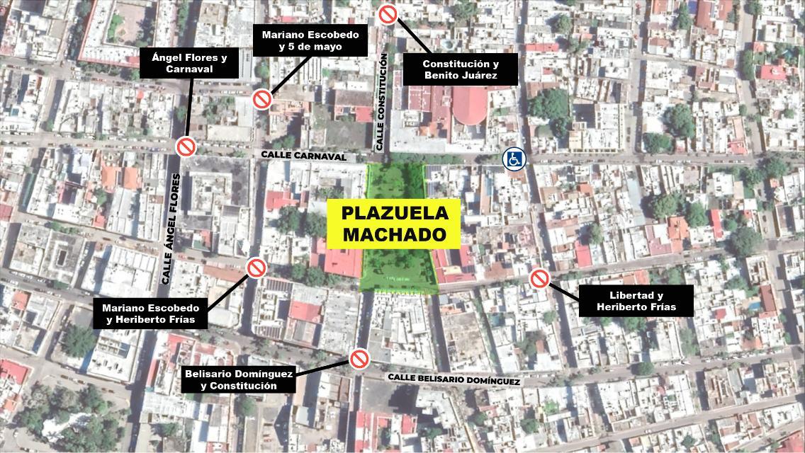En el caso de la Plazuela Machado, dijo que será hasta este viernes cuando se harán cierre a las calles aledañas, pero esto ocurrirá en el transcurso de la tarde.