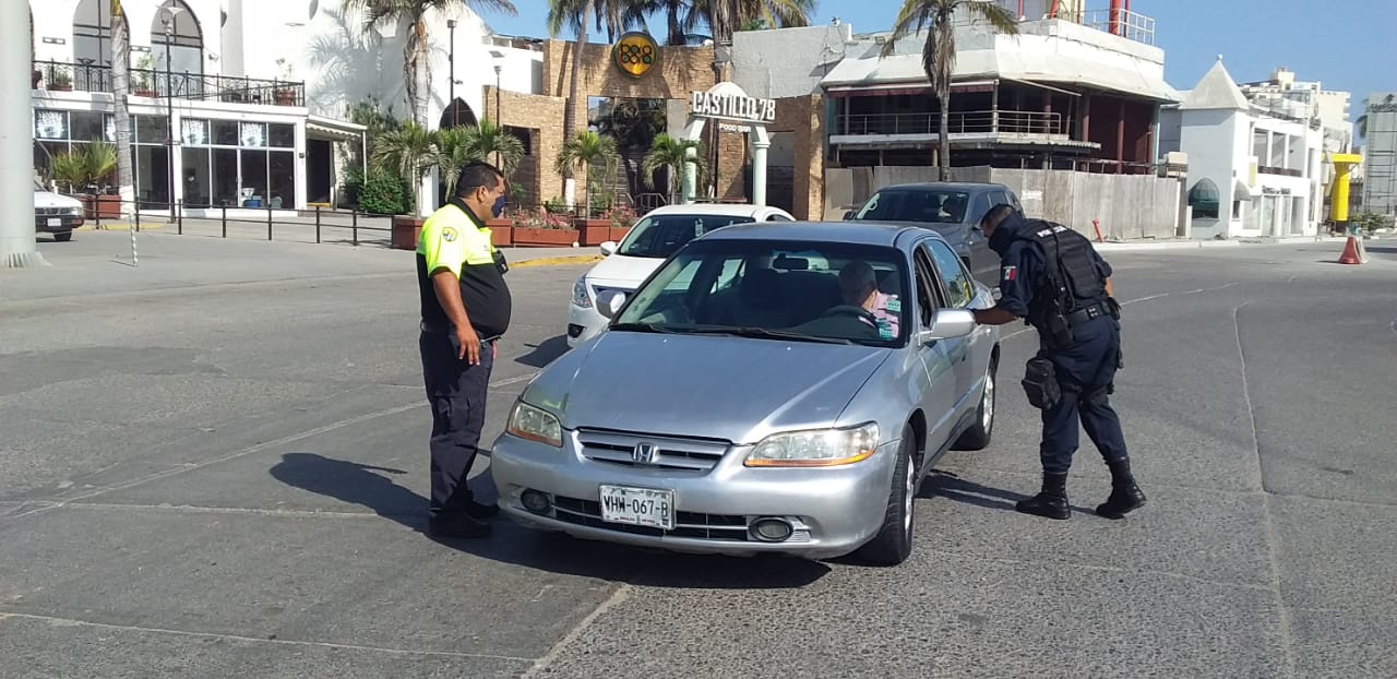 Mazatlán.- La Subdirección de Tránsito Municipal continúa participando en los operativos de concientización ciudadana que implementa el Gobierno de Mazatlán a través de la Secretaría de Seguridad Pública, para la concientización ciudadana sobre el uso de cubre bocas y guardar la sana distancia en el interior de los vehículos.