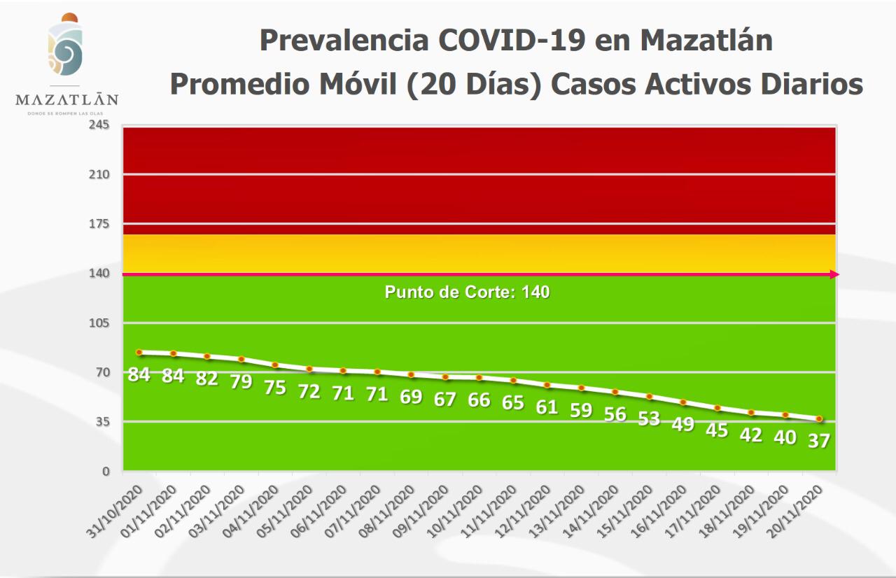 Mazatlán.- Con una tendencia favorable a la baja, este municipio amaneció hoy con 38 casos activos de Covid-19, luego de que en el informe se la Secretaría de Salud de Gobierno del Estado la ciudad no registró nuevos pacientes ni fallecimientos a causa de esta enfermedad.