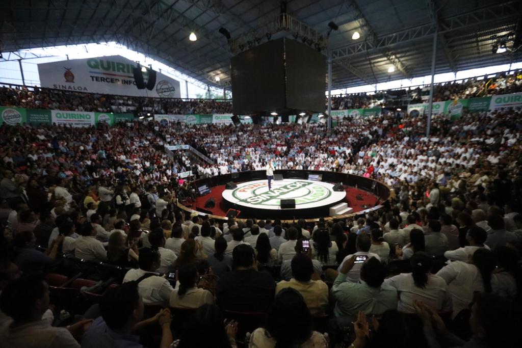 “Esto es Sinaloa, y aquí están reunidos para decirlo los jóvenes, las mujeres, los deportistas, los maestros, la sociedad de Sinaloa. Seguiremos mirando hacia adelante, todos juntos, todos unidos, por la grandeza de Sinaloa. Puro Sinaloa”, concluyó su mensaje Quirino Ordaz Coppel.