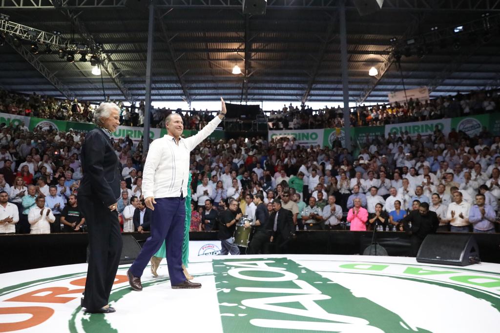 El gobernador Quirino Ordaz Coppel, quien arribó acompañado de su esposa Rosy Fuentes, hizo un recuento de las principales acciones desarrolladas durante su administración, que ha ejercido inversión de alrededor de 16 mil millones de pesos en obra pública y lo más importante sin haber contratado deuda pública a largo plazo.