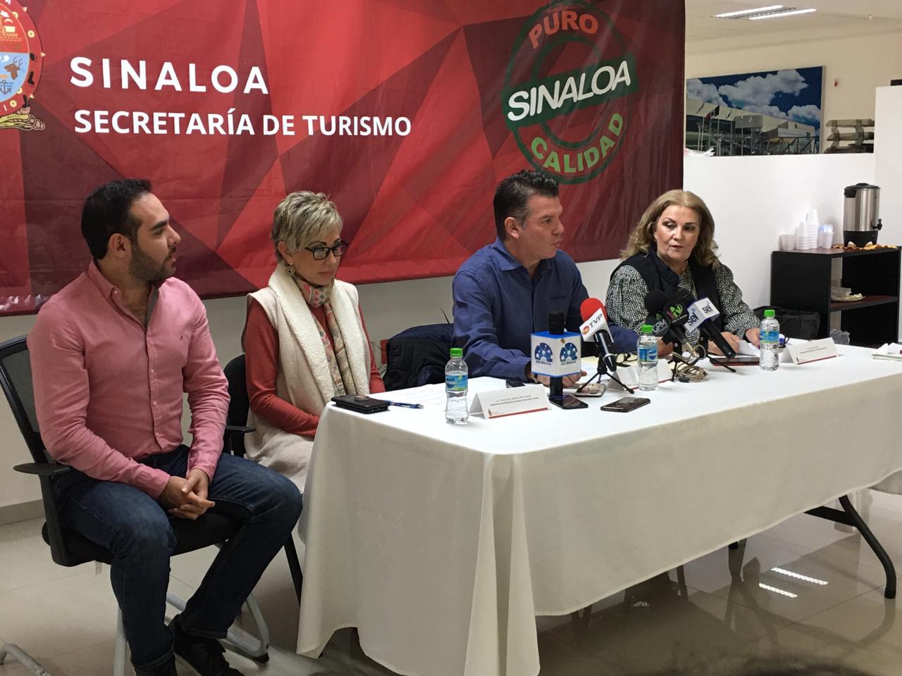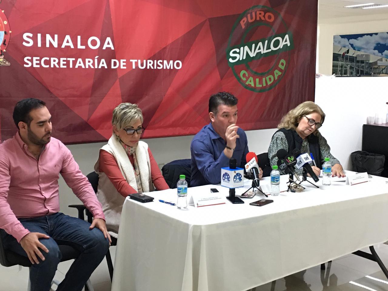 En la conferencia estuvo acompañado por la subsecretaria de Planeación, Inversión y Desarrollo Turístico, Mónica Coppel Tirado; la subsecretaria de Promoción y Operación Turística, y el director de Turismo Social, Trinidad Osuna Lizárraga.