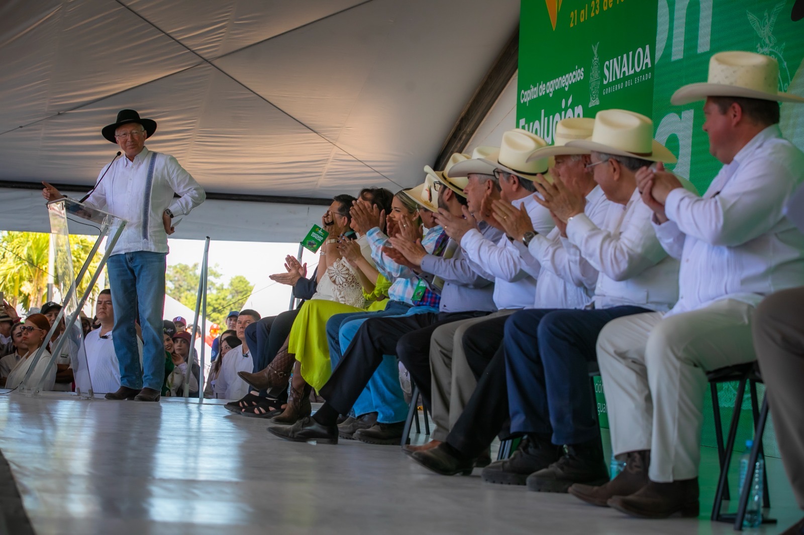Cabe destacar que en la ceremonia de inauguración, el embajador de Estados Unidos, Ken Salazar pronunció un mensaje, en el cual elogió la grandeza de los productores sinaloenses, quienes en gran parte dan de comer no sólo a las familias de México, sino también sus productos llegan a las mesas de los estadounidenses.