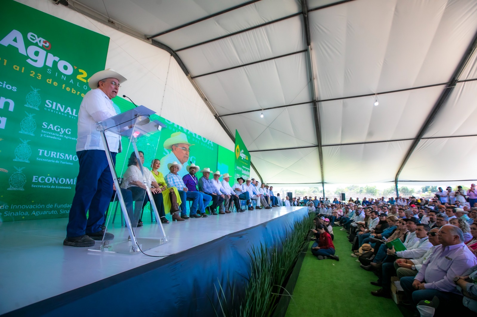 Por su parte, el secretario de Agricultura, Víctor Manuel Villalobos, dijo que es importante destacar el lugar que se ha ganado la Expo Agro Sinaloa, al reconocer que es una plataforma donde los mejores técnicos y productores de México y del mundo vienen a capacitarse desde hace muchos años en transferencia de tecnología, en el mejoramiento de la productividad, la inocuidad alimentaria y la responsabilidad social para que el campo mexicano siga creciendo de forma sustentable.