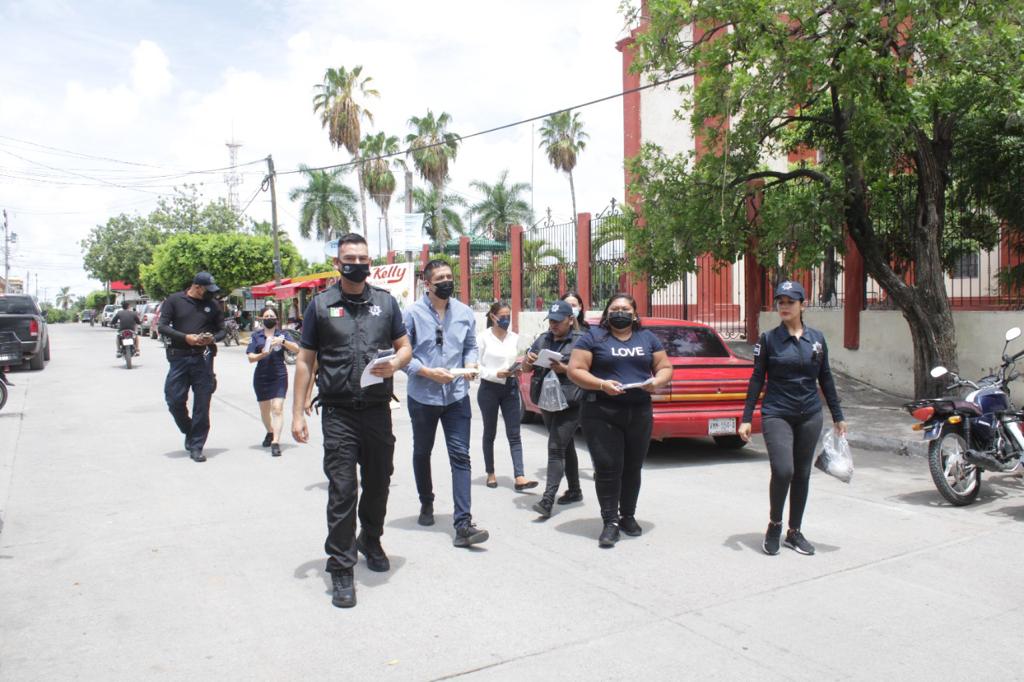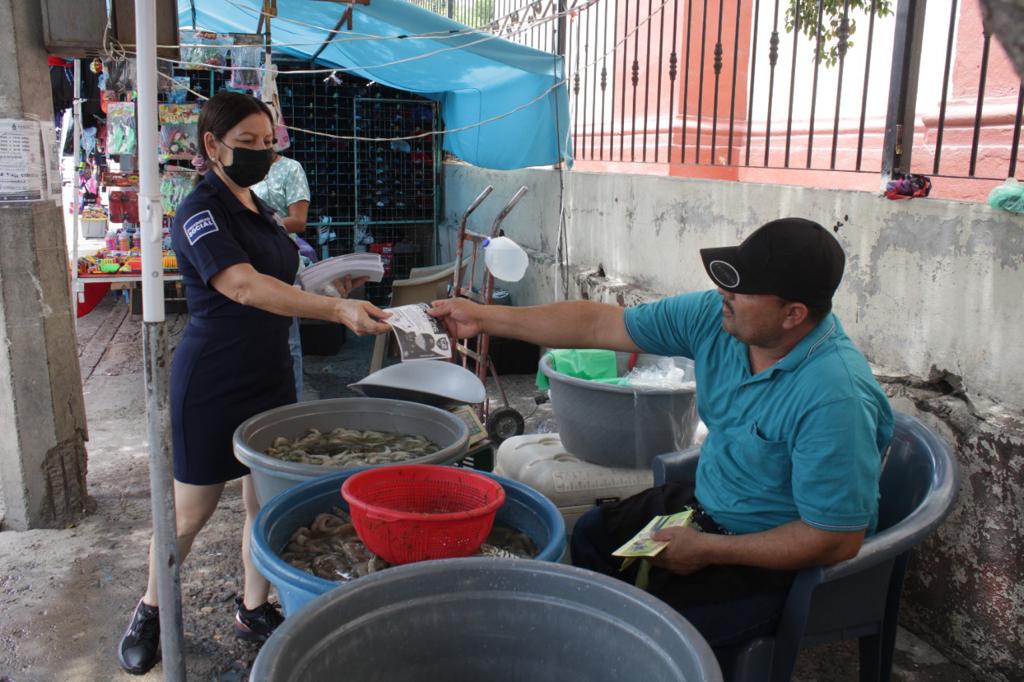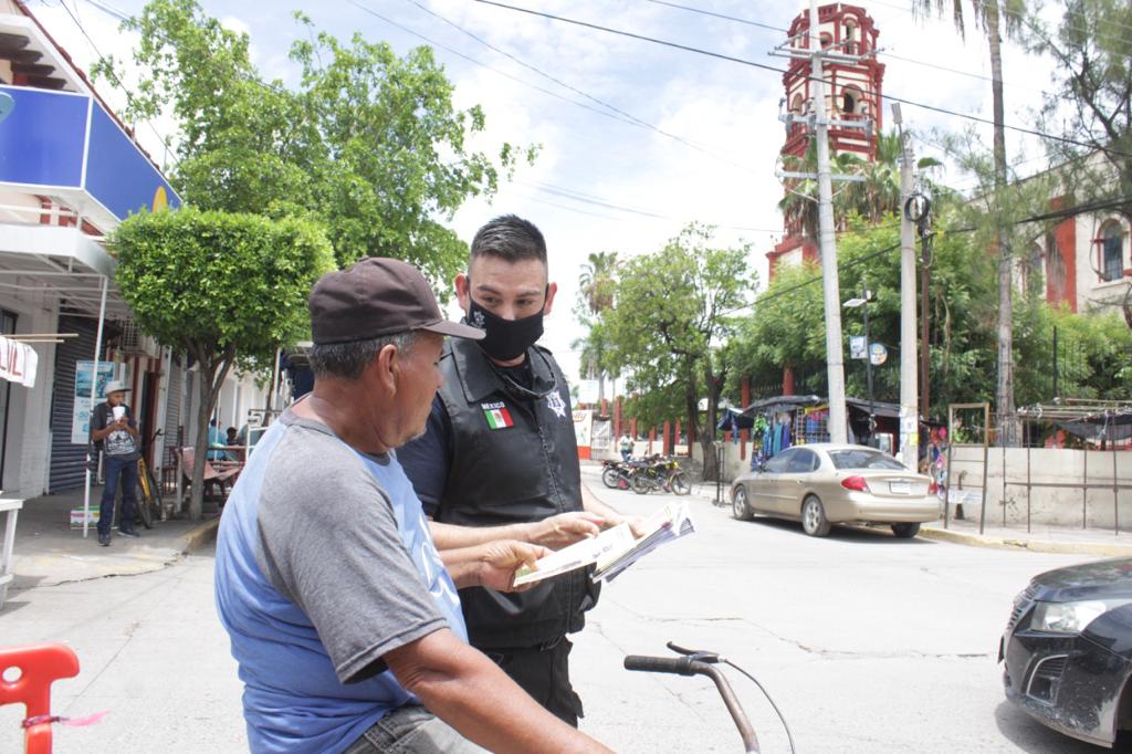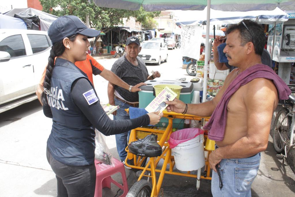 En el primer cuadro de la ciudad, interior del mercado municipal y los alrededores de la plazuela, los habitantes recibieron además algunas indicaciones y los teléfonos de emergencia alternativos al 9-1-1 para denunciar la comisión de delitos, a través de la Mazatlán APP con el botón de alerta y el 6699 868126 que corresponde al C2 municipal.