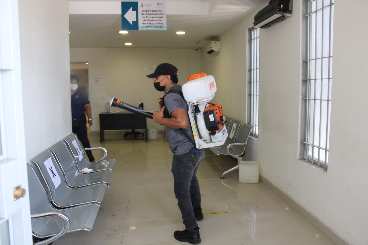 Así lo destacó el titular de la dependencia, Comisario Juan Ramón Alfaro Gaxiola, quien dijo que para apoyar a la Unidad de Protección Civil, adquirió su propio equipo con el que se desinfectan todas las áreas incluido el área de Barandilla o celdas preventivas.