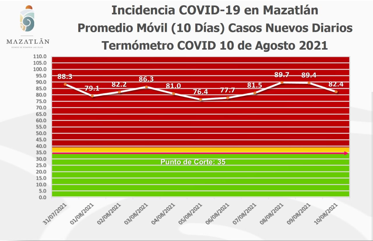 Destacó que el Termómetro Covid descendió por segundo día consecutivo y se ubicó en los 82.4 grados, y se mantiene en color rojo.