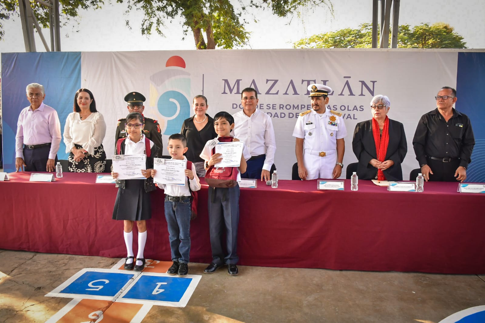 Finalmente, el Alcalde Edgar González entregó reconocimientos a estudiantes destacados, así como un pase familiar y kit del Acuario Mazatlán, material deportivo y realizaron la plantación de un árbol como programa de reforestación en los planteles.
