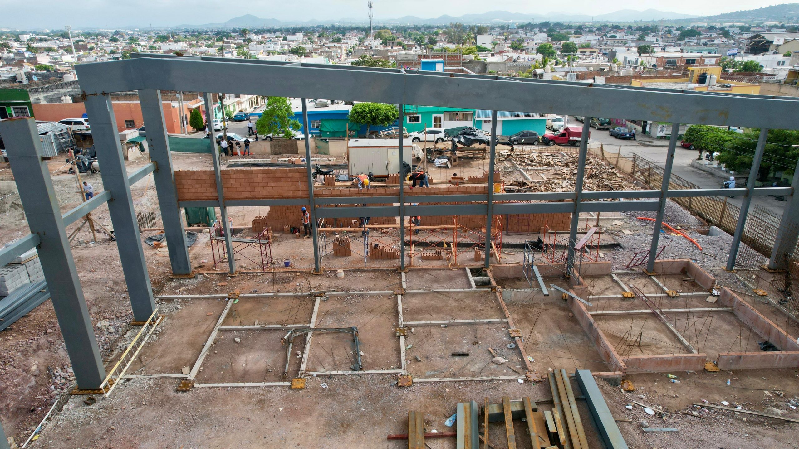 “Es una obra que en 60 días tiene que acelerarse con todo, prácticamente nada más le falta el armado de estas vigas y lo que es la colocación del techo, que son techos armables, prefabricados que vienen y los instalan rápido”, dijo Edgar González.