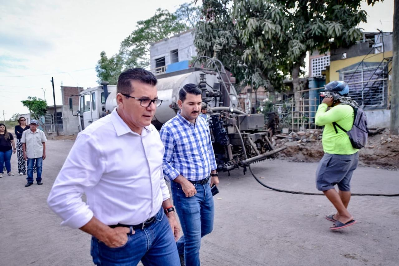 El Alcalde de Mazatlán, Edgar González, encabezó una inspección a la obra integral que se está llevando a cabo en las calles Platanar y Nopalera, donde los residentes han padecido problemas como inundaciones, enfermedades respiratorias y cutáneas debido a la ausencia de pavimento.