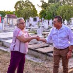 El Alcalde Edgar González visitó el cementerio acompañado de la Directora de Servicios Públicos Karla Camacho Guzmán para supervisar la limpieza del lugar y la instalación de lámparas LED en el perímetro del campo santo.