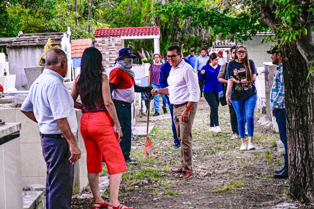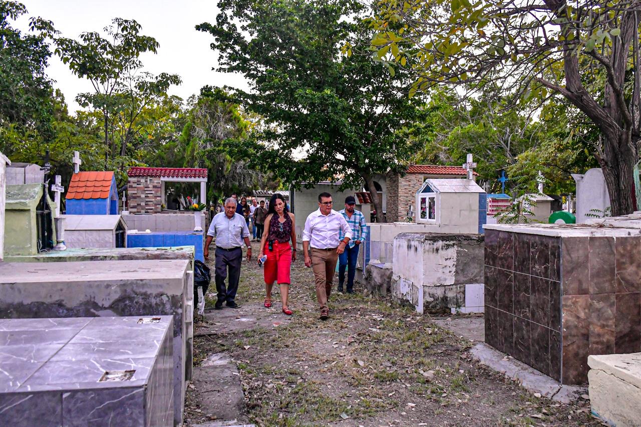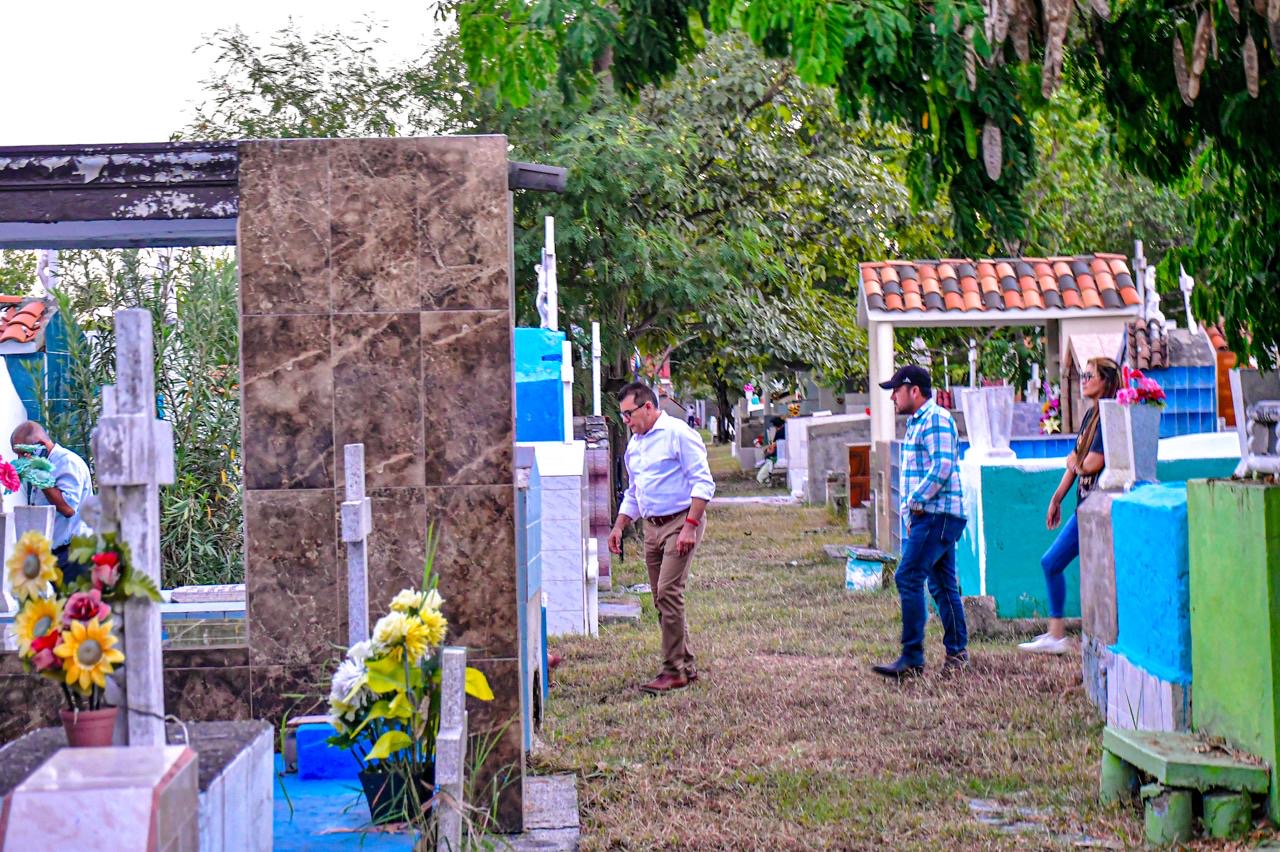 El Alcalde Edgar González visitó el cementerio acompañado de la Directora de Servicios Públicos Karla Camacho Guzmán para supervisar la limpieza del lugar y la instalación de lámparas LED en el perímetro del campo santo.