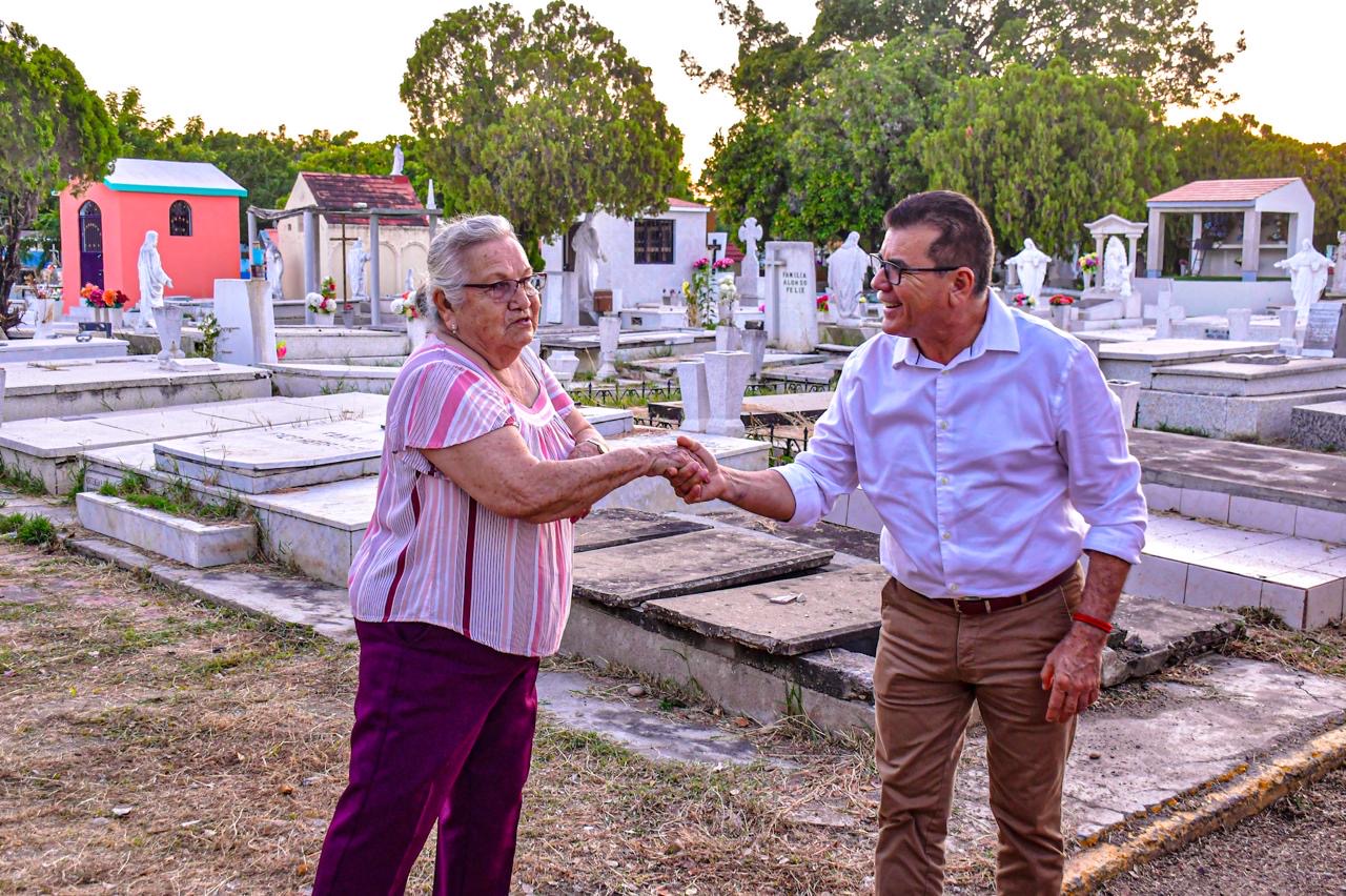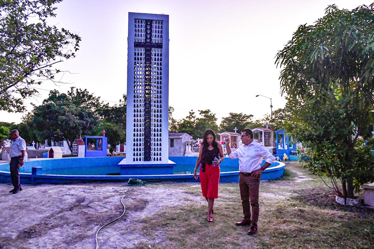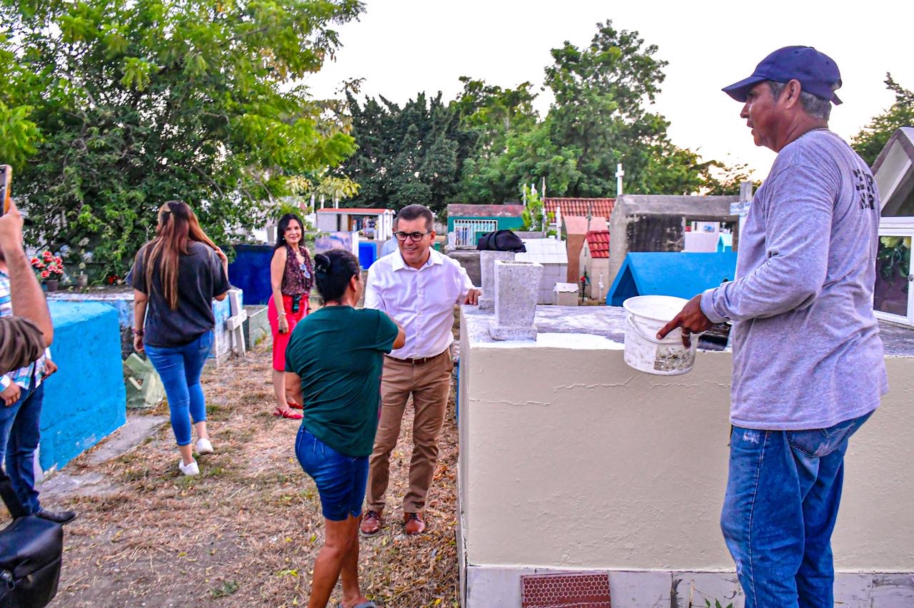 El Alcalde Edgar González visitó el cementerio acompañado de la Directora de Servicios Públicos Karla Camacho Guzmán para supervisar la limpieza del lugar y la instalación de lámparas LED en el perímetro del campo santo.