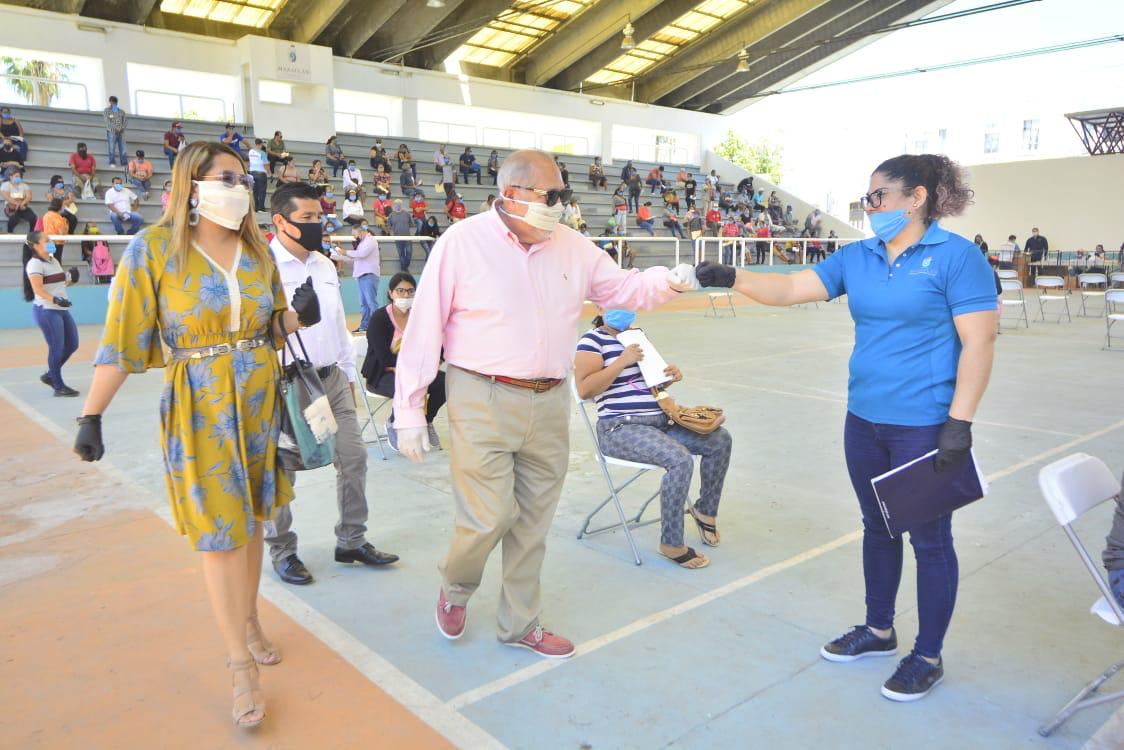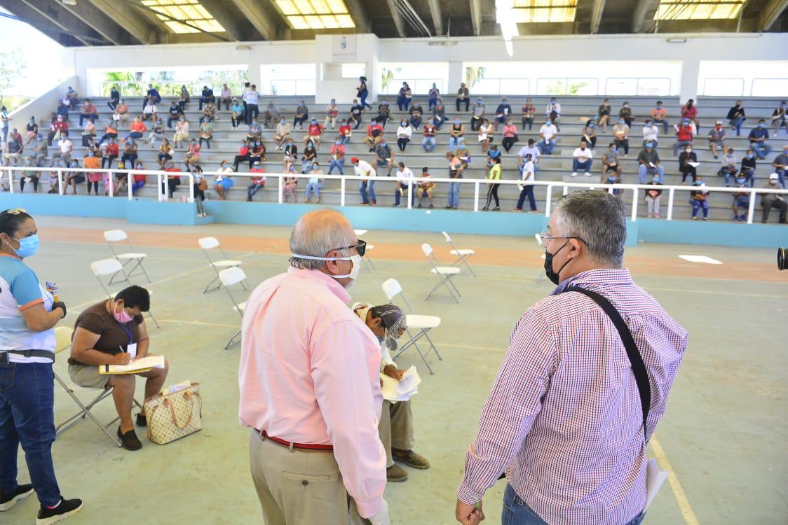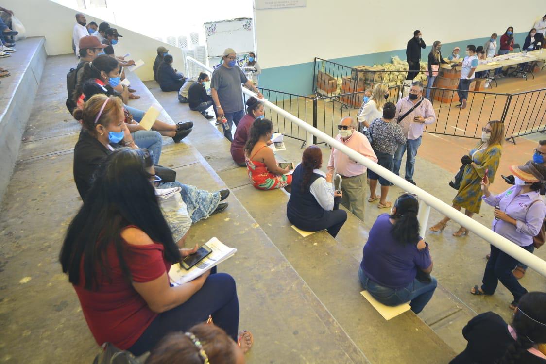 El Gobierno Municipal decidió continuar con la entrega de este apoyo en la cancha Germán Evers, donde existe mayor espacio para atender a las personas que se registraron en línea.