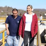 En compañía del Gerente General de la Junta Municipal de Agua Potable y Alcantarillado de Mazatlán (JUMAPAM), Jorge González Naranjo, Estrella Palacios recorrió las instalaciones del lugar, para cerciorarse y constatar que las labores por parte del equipo técnico del organismo operador se llevan en tiempo y forma, con recursos propios, es decir, con personal especializado, operadores y maquinaria propia de la junta, evitando contratar alguna compañía externa.