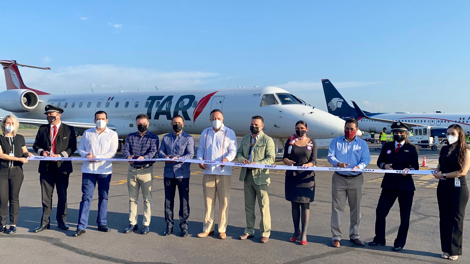 Culiacán, Sin., octubre 19 de 2021.- Esta mañana se inauguró la ruta aérea Culiacán-la Paz, que será operado por la empresa TAR, con tres frecuencias a la semana, los días martes, jueves y sábados.