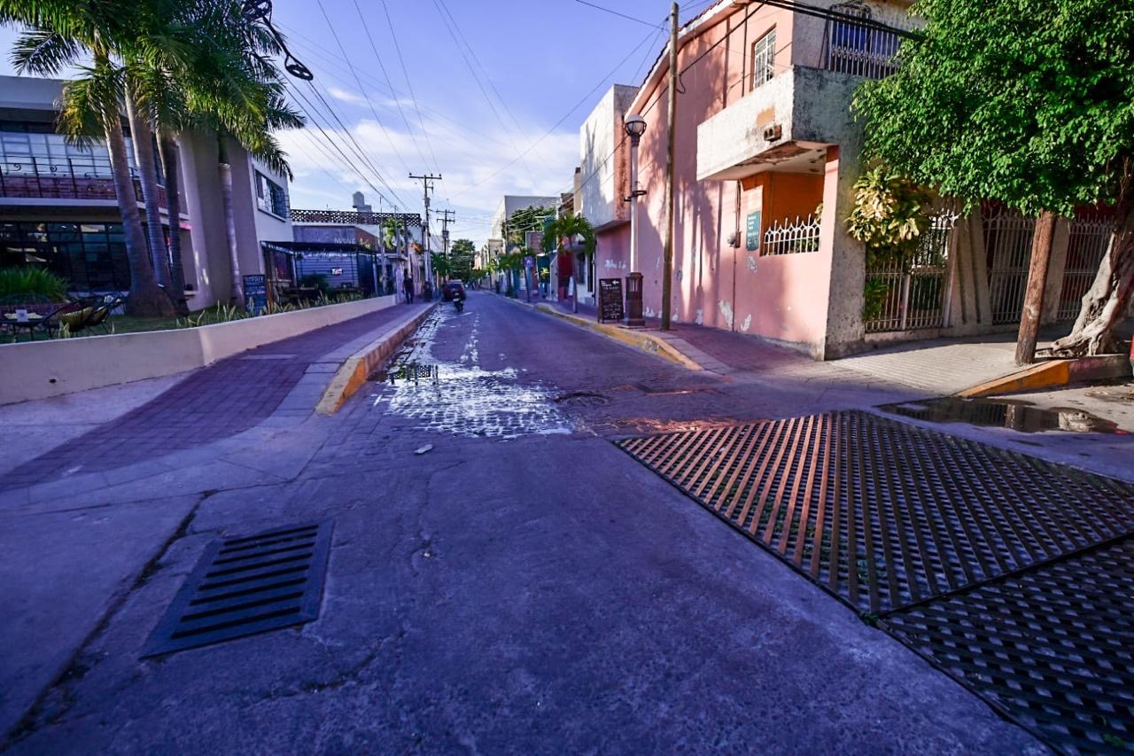El Primer Edil precisó que abajo de esta calle se encuentra un ducto de agua pluvial que va hasta el malecón, por lo tanto el drenaje se va por las rejillas de las dos banquetas.