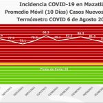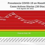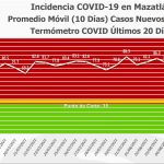 Cristian Castillo López, encargado de Protocolos y Sanidad del Ayuntamiento de Mazatlán, comentó que con esta cifra el municipio continúa en color rojo del Semáforo Epidemiológico Estatal y en tercer lugar en casos activos por debajo de Culiacán (1,189) y Ahome (552).