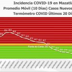 Castillo López destacó que Mazatlán se mantiene en color verde tanto en el Semáforo Epidemiológico Estatal como en el Termómetro Covid del Municipio, que se ubicó en los 9.1 grados y también lleva ya 17 días consecutivos a la baja.