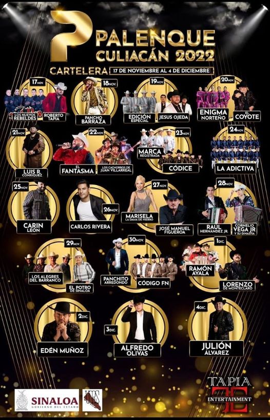 La capital del estado arranca con su máxima fiesta con Los Nuevos Rebeldes, Roberto Tapia, el viernes 18, Pancho Barraza; sábado 19, Edición Especial, Jesús Ojeda; domingo 20. Enigma Norteño, El Coyote y su Banda, y el lunes 21, Luis R Conríques. Consulta la cartelera pues el Teatro del Pueblo tiene preparadas muchas sorpresas.