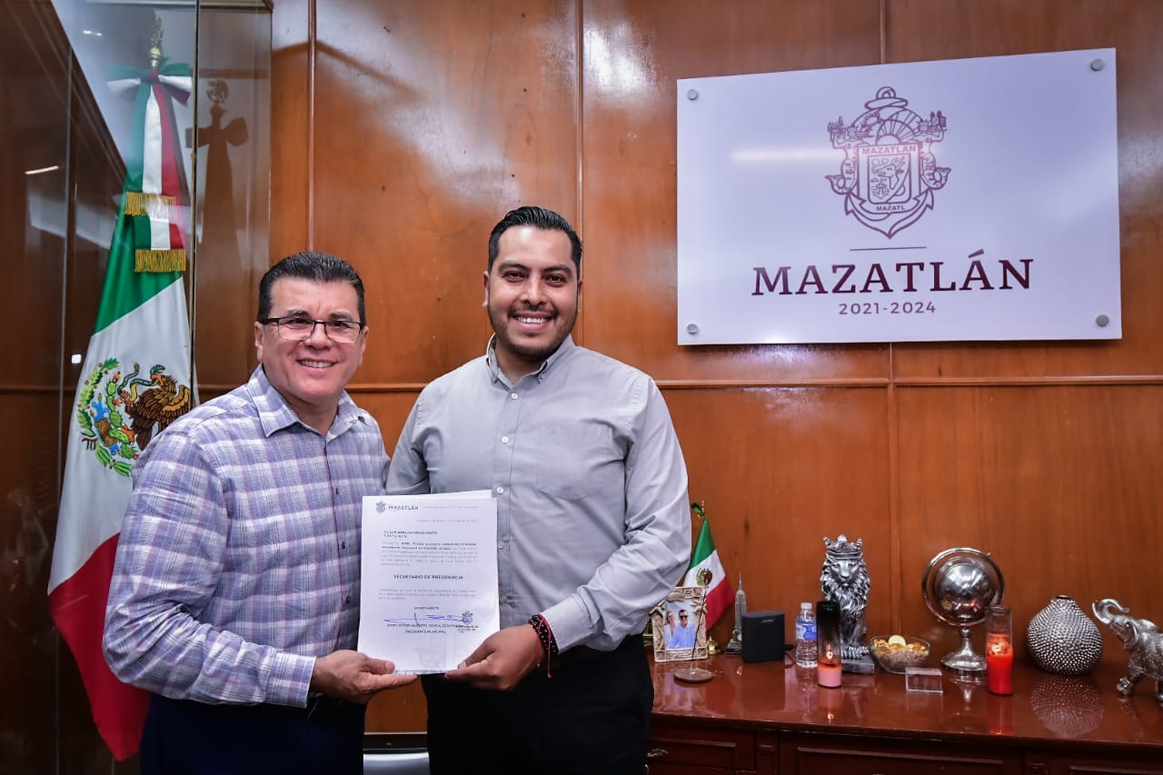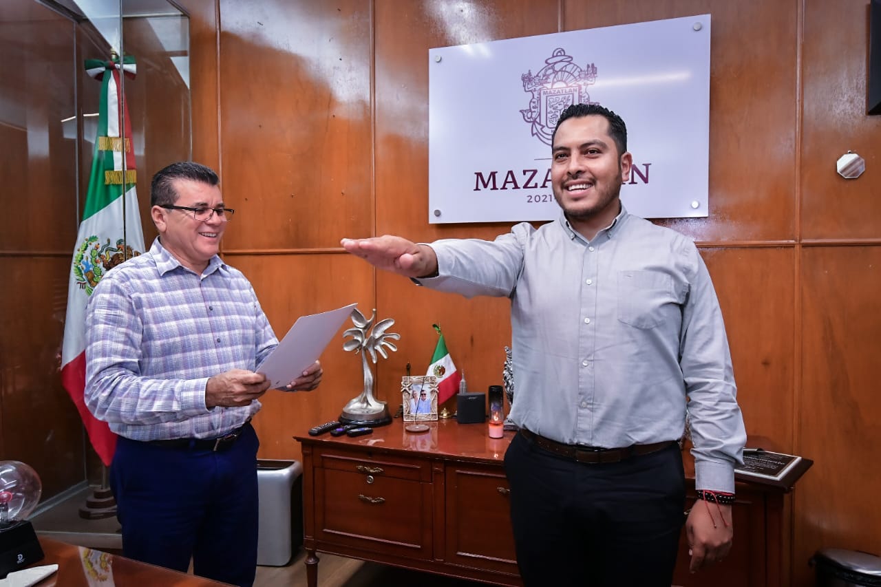 El Alcalde Edgar González entregó el nombramiento y encomendó al funcionario realizar su trabajo con respeto y honestidad en favor del municipio y de la ciudadanía mazatleca.