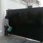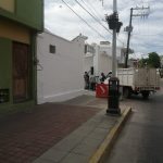 La fachada fue pintada de blanco para borrar el letrero que decía Estacionamiento Exclusivo H. Ayuntamiento, la puerta de negro y empezaron a ser desalojados los vehículos municipales que había en su interior así como a limpiar el lugar.