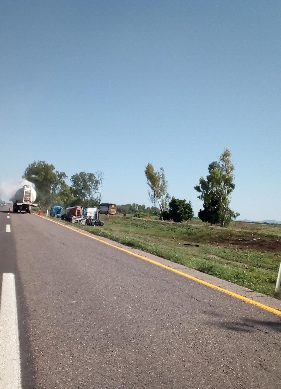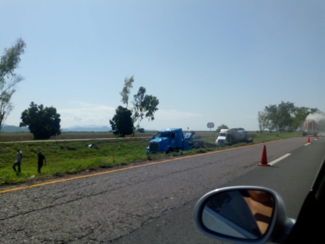 Mazatlán, Sinaloa.- Por un desperfecto mecánico el conductor de una unidad de carga se vió en la necesidad de salir de la carretera para evitar una tragedia.