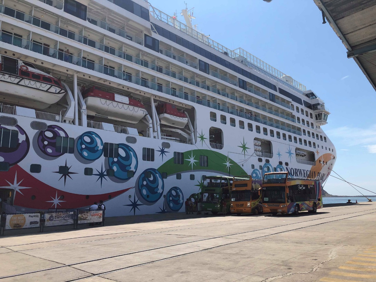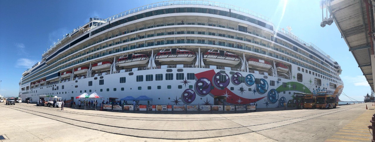 Mazatlán, Sin., octubre 18 de 2018.- Con la llegada esta mañana a Mazatlán del Norwegian Pearl, que trajo consigo 1,910 pasajeros y 1,067 tripulantes, suman tres cruceros turísticos los que han arribado en lo que va de esta semana, generando una buena derrama económica en el sector.