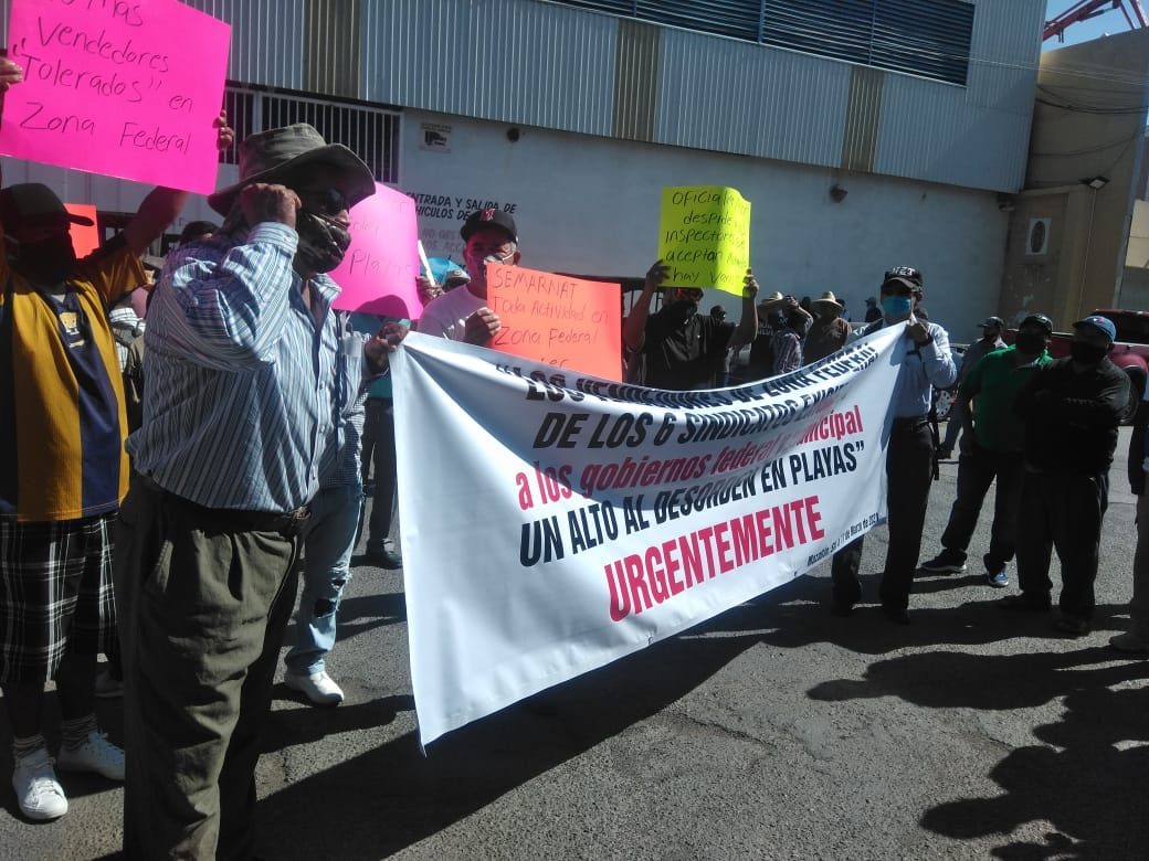 Luego de una realizar una marcha manifestación que terminó en las oficinas de Semarnat y Profepa, en el parque industrial Alfredo V. Bonfil, donde les recibieron el oficio donde les piden una reunión urgente para analizar la situación en las playas, los vendedores se trasladaron a la plazuela Zaragoza, donde se organizaron de nuevo y marcharon hacia Palacio Municipal.