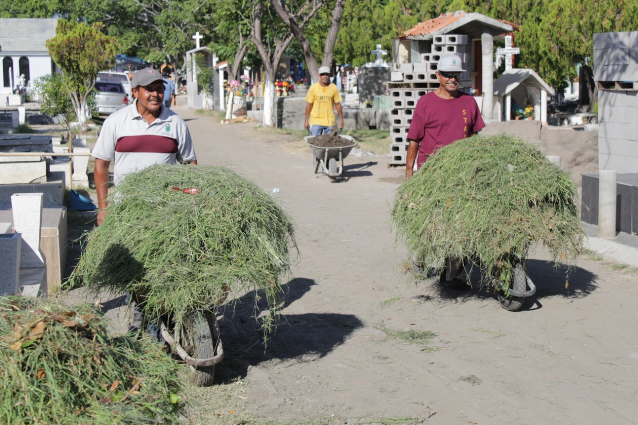 La Dirección de Servicios Públicos a través del departamento de Panteones y Parques y Jardines trabajan en la limpieza, pintura y restauración de los cementerios.