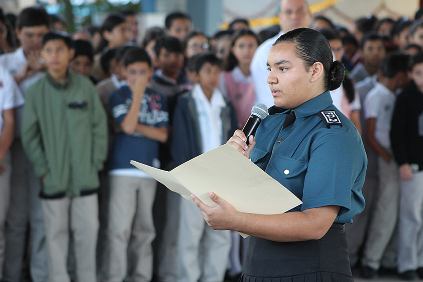 El primer mensaje de bienvenida estuvo a cargo de la alumna Andrea Alcala Macías, quien dirigió su discurso al presidium.