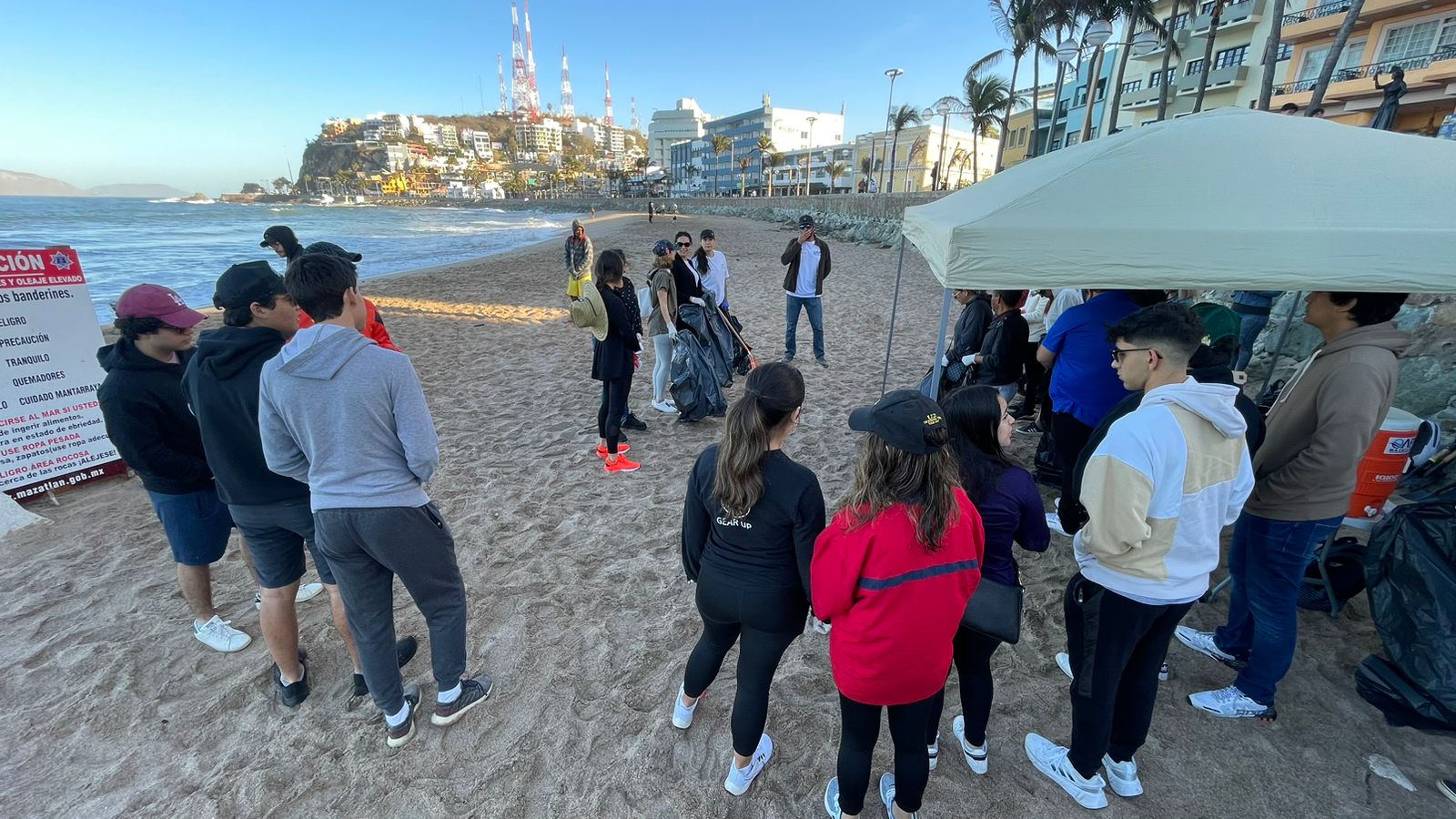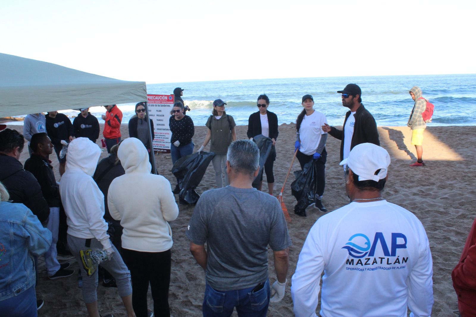 También, integrantes del Consejo Rector Centro Histórico Mazatlán se sumaron a esta jornada, como parte del compromiso signado en la conformación de esta asociación, en la que se plantea la limpieza de las playas del área durante el primer sábado de cada mes.