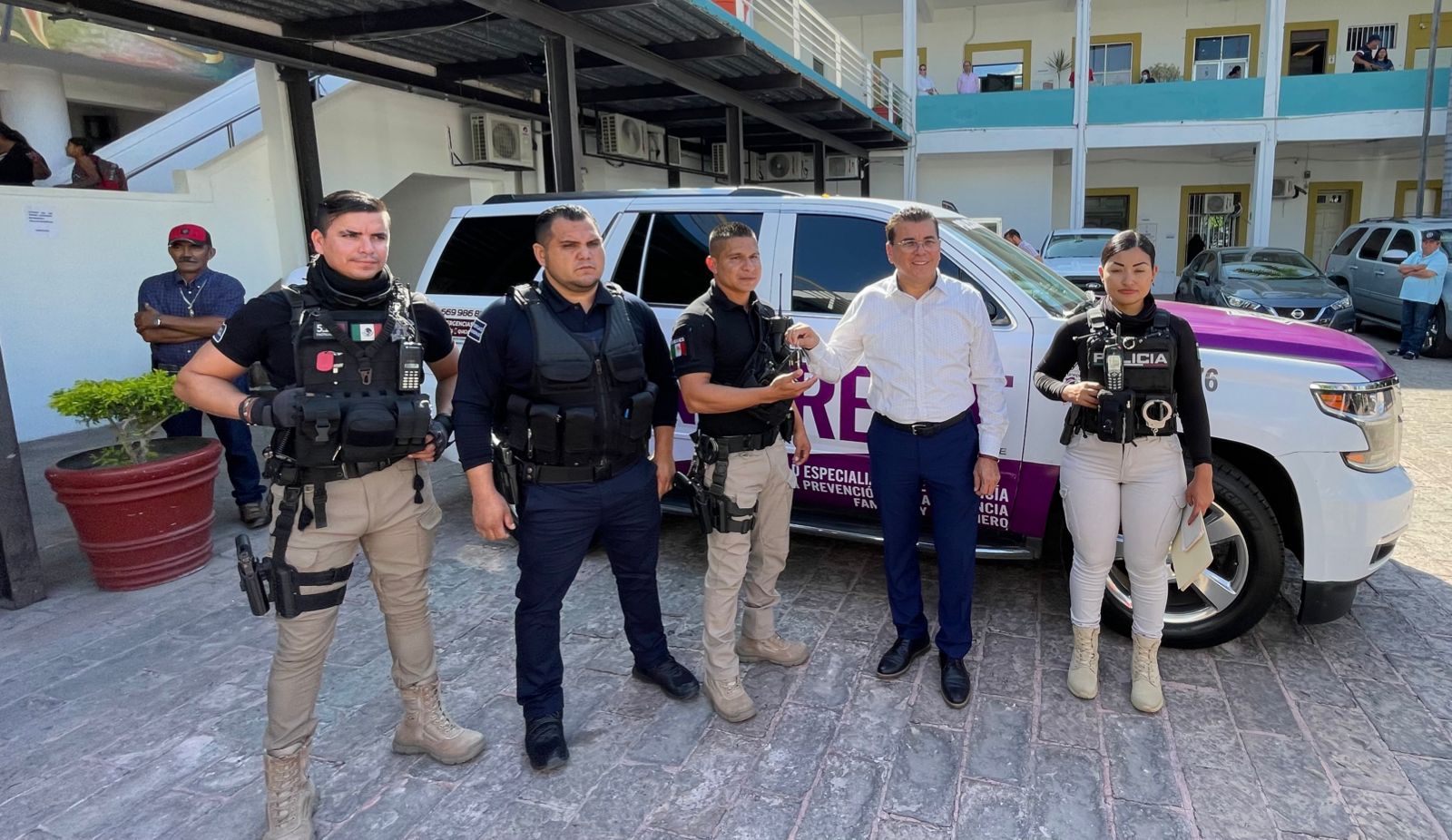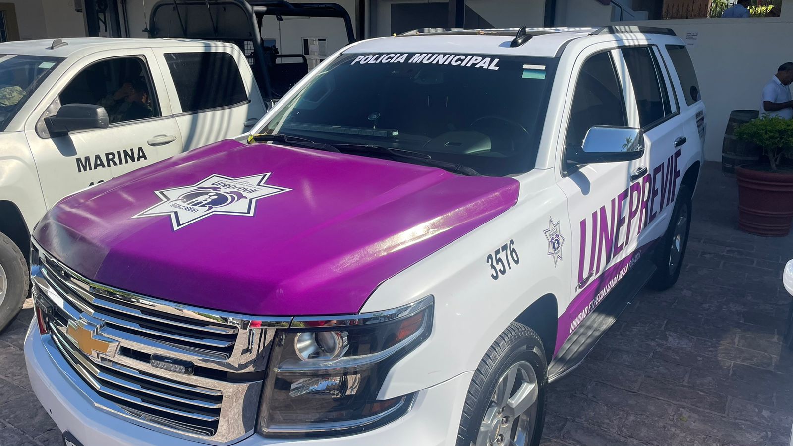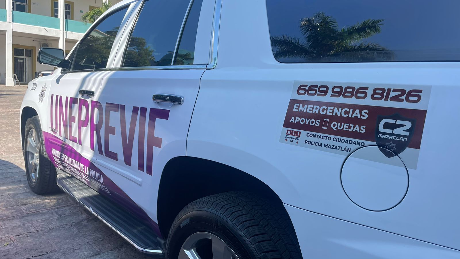 Mazatlán, Sinaloa.- La polémica camioneta que estuvo asignada a la ex oficial mayor, Nayla Velarde y que habría estado involucrada en un accidente de tránsito, este viernes fue entregada rotulada de blanco con distintivos morados para la atención de víctimas por la Unidad Especializada de la Policia en Prevención de la Violencia Familiar y de Genero.
