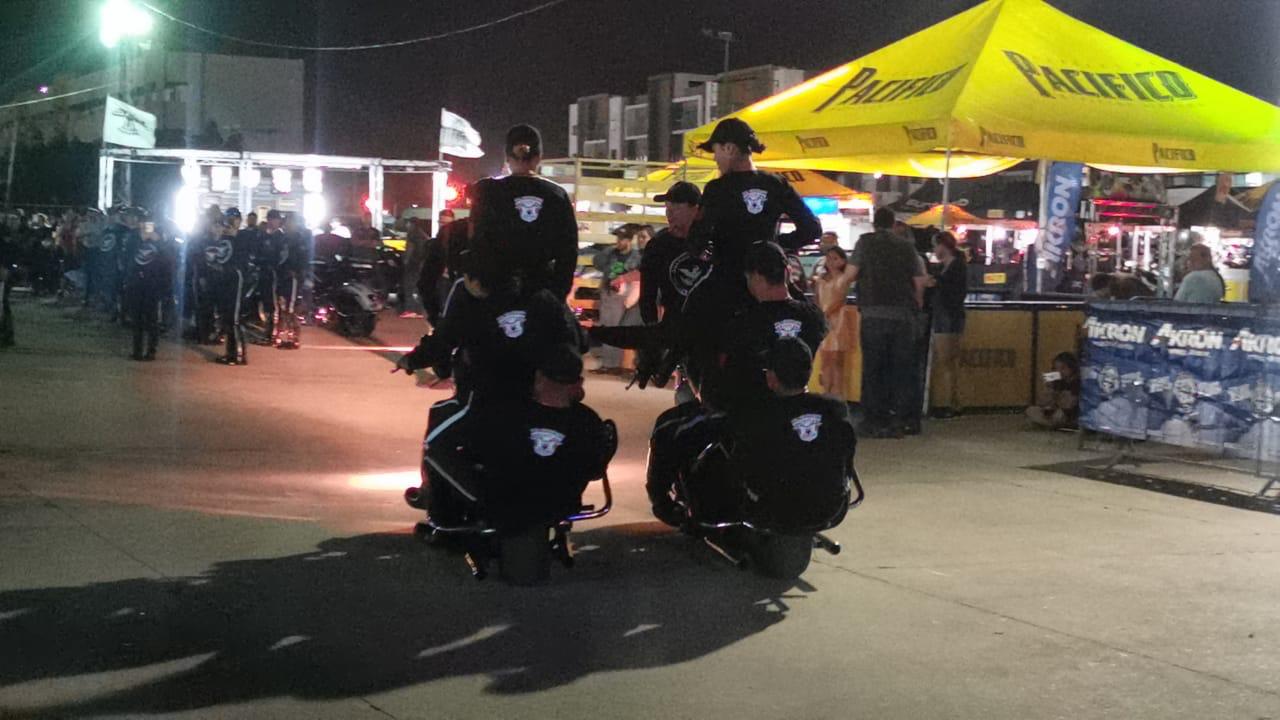 Está tarde, la Guardia Nacional abrió actividades en la Plaza de la Moto, con un gran espectáculo de acrobacias, que reunió a decenas de asistentes para apreciar el show en el arranque del evento motorizado, el cual se celebra del 12 al 15 de marzo