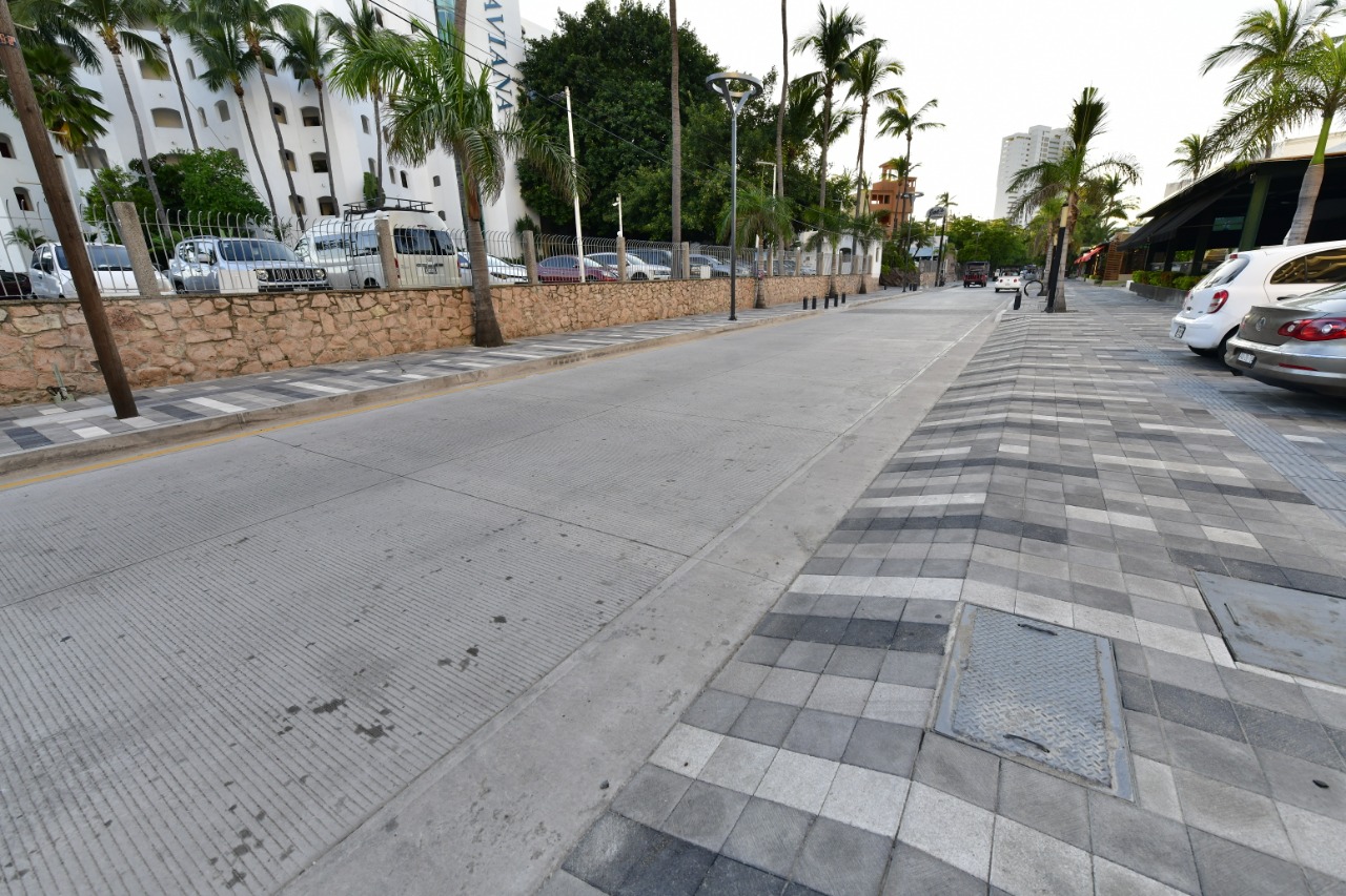 La reconstrucción de la avenida Playa Gaviotas y las calles Playa Bugambilia y Privada de las Garzas, en la Zona Dorada, tuvo una inversión de 71.3 millones de pesos, e incluye mobiliario urbano, alumbrado público, jardineras y reposición de tuberías de agua potable y drenaje.