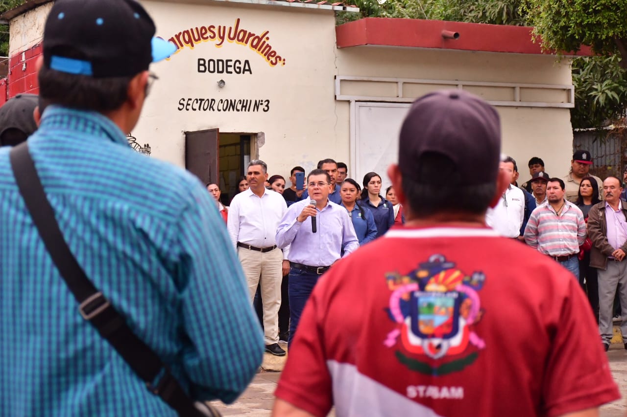En compañía de la directora de servicios públicos, Karla Camacho, la secretaria general del sindicato del Ayuntamiento, Laura Tirado Aguilar y los regidores Jesús Osuna Lamarque y Roberto Rodríguez, González Zatarain, aseguró que se escatimará en mejoras para los trabajadores de esa área.