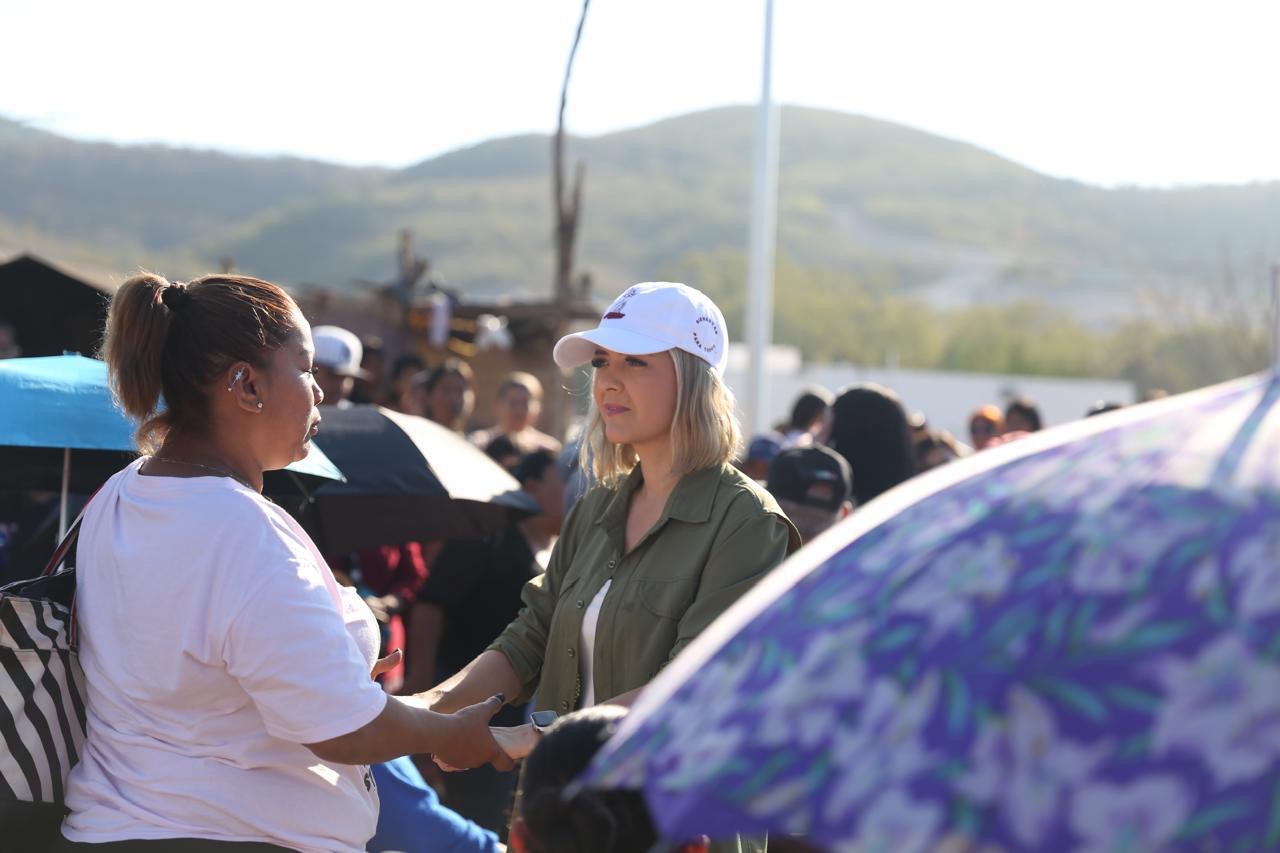 Estrella Palacios escucha sus peticiones y planteamientos, canalizándolos a las áreas de Gobierno pertinentes en busca de darles respuesta oportuna; les hace entrega de despensas alimenticias y cobijas